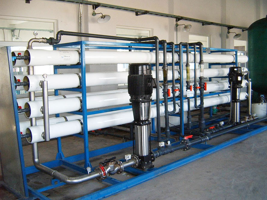水處理設(shè)備在說反滲透阻垢劑的作用前,先簡述一下反滲透系統(tǒng):反滲透水處理設(shè)備是將原水經(jīng)過精密過濾器、顆?;钚蕴歼^濾器、壓縮活性碳過濾器等,再通過泵加壓,利用孔徑為1/10000μm的反滲透膜(RO膜),使較高濃度的水變?yōu)榈蜐舛人?,同時(shí)將工業(yè)污染物、重金屬、細(xì)菌、病毒等大量混入水中的雜質(zhì)隔離,水處理設(shè)備從而達(dá)到飲用規(guī)定的理化指標(biāo)及衛(wèi)生標(biāo)準(zhǔn),產(chǎn)出至清至純的水,是人體及時(shí)補(bǔ)充優(yōu)質(zhì)水份的較佳選擇。